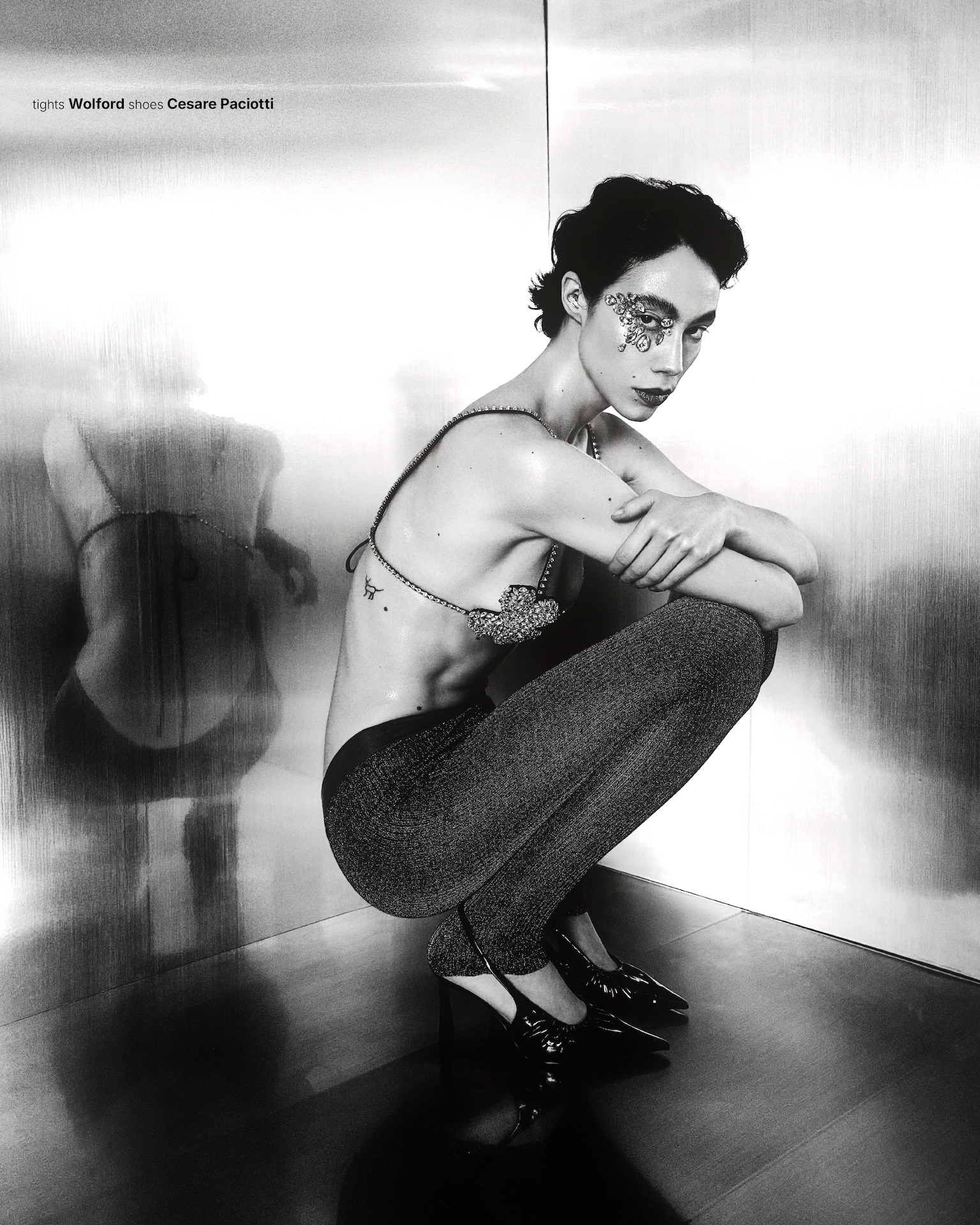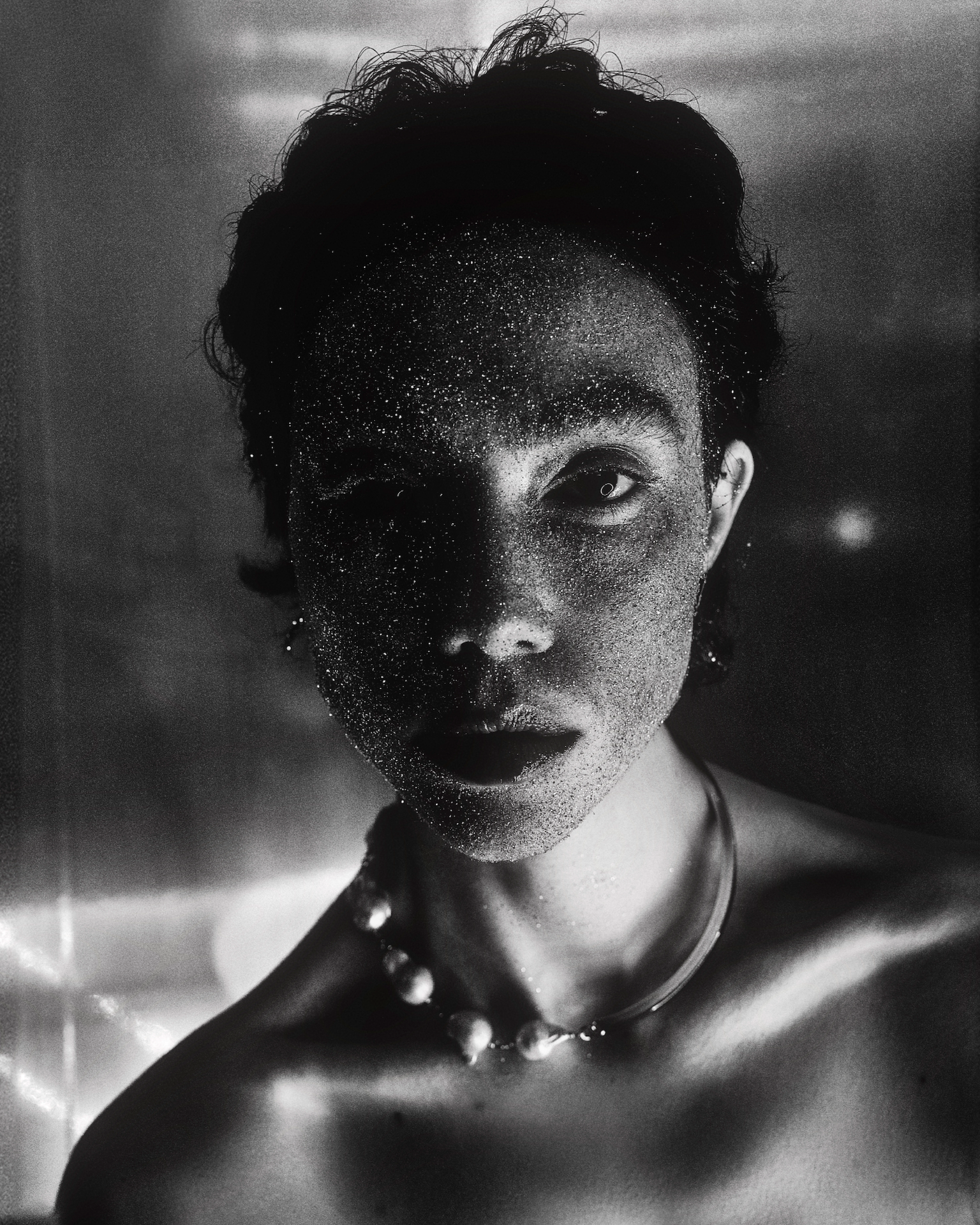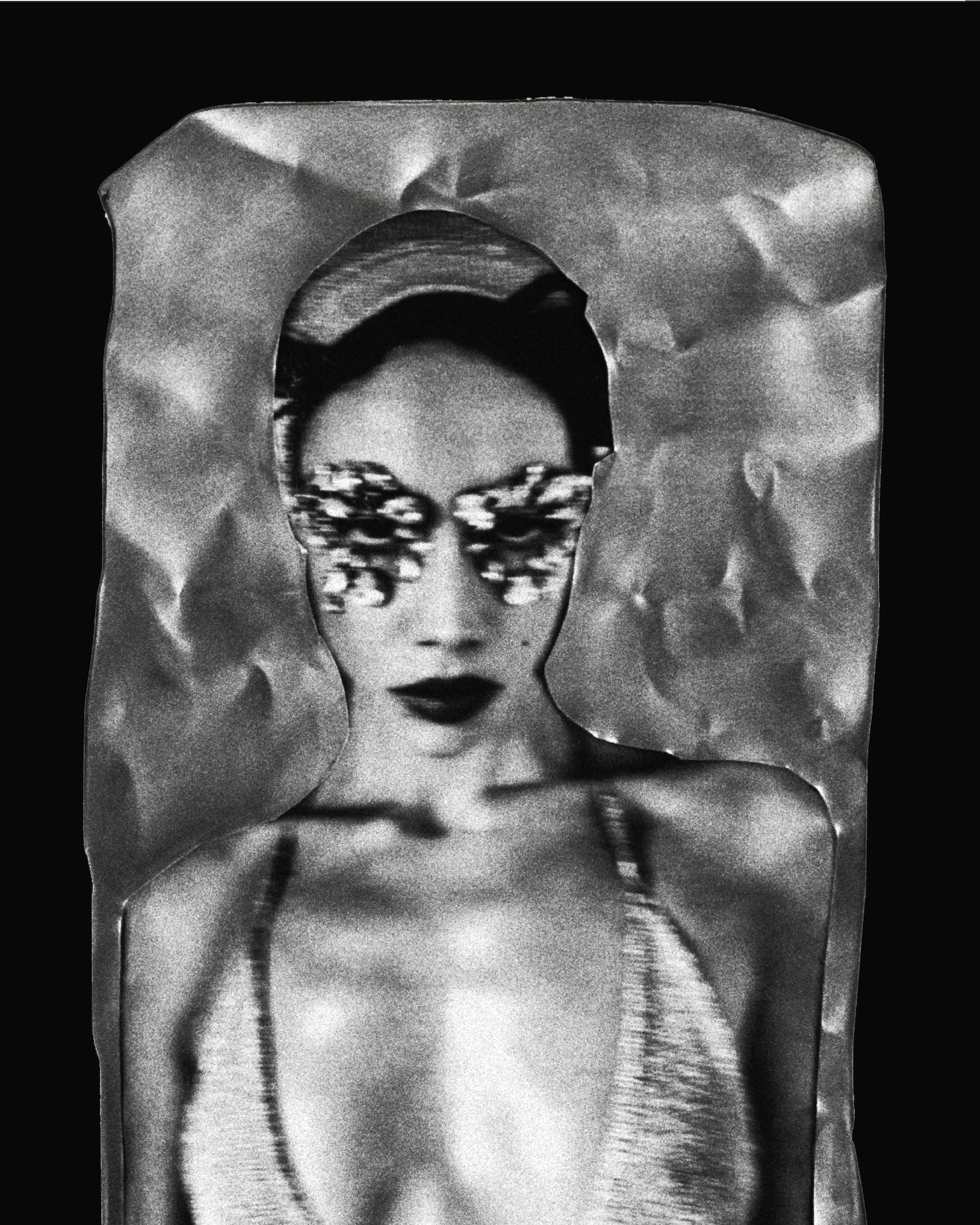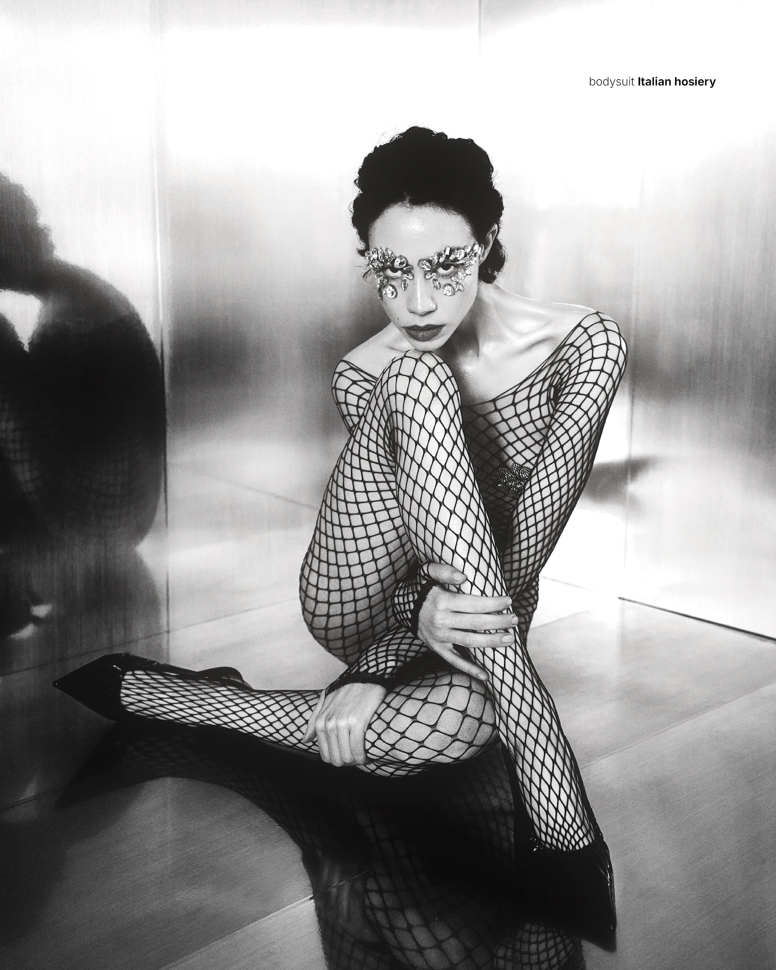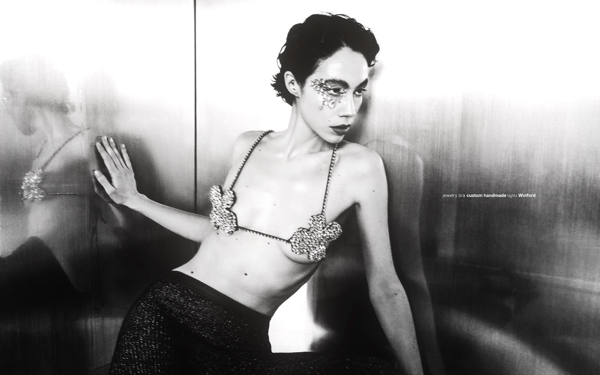 Light enters and moves across the metal and her skin