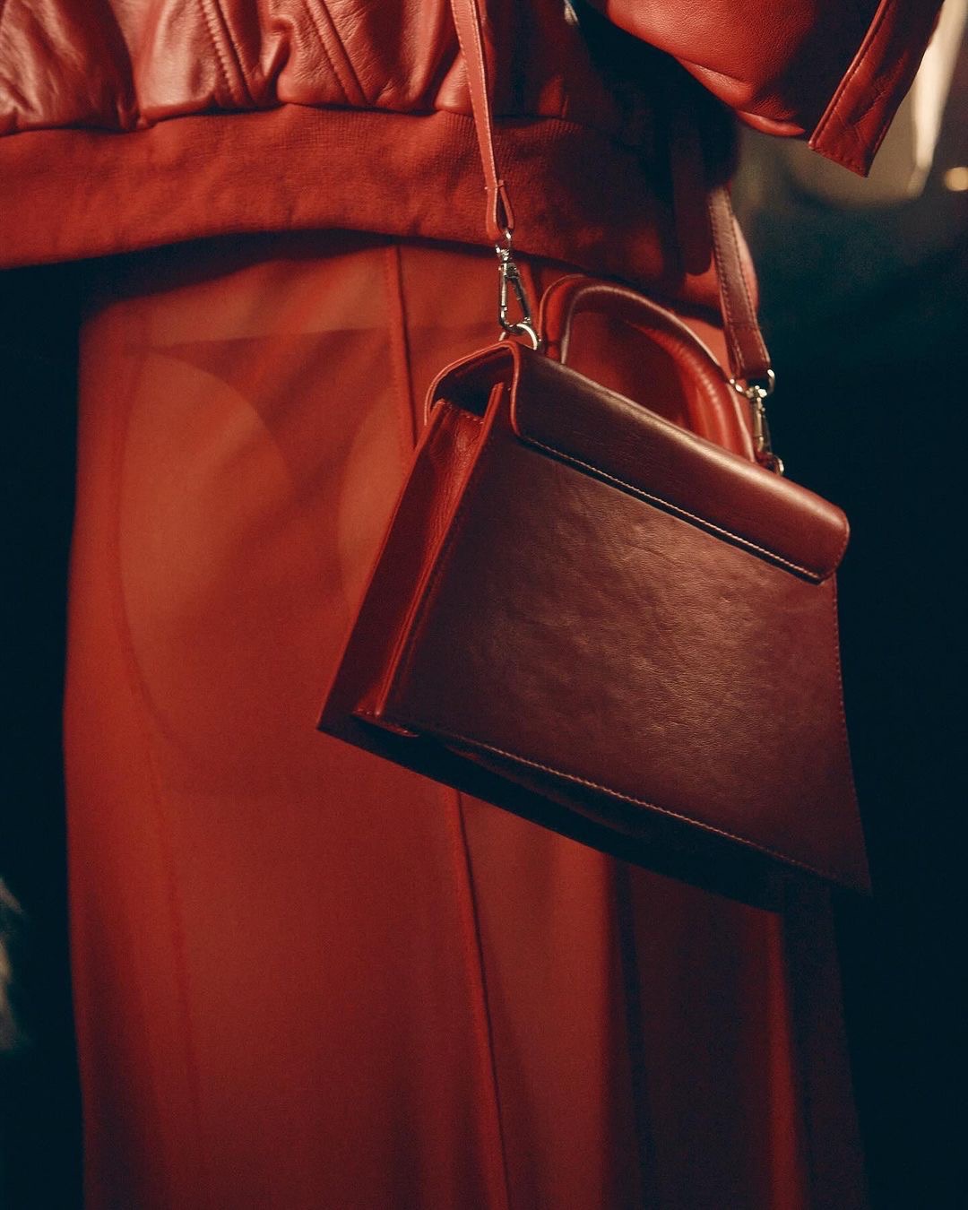 "Red lips and leather pieces were some of the first words—a subtle dance with temptation. The collection, Temptation Dance, tells the story of a woman who has no intention of choosing how she shows up at work or for play.